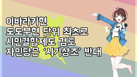 일본의 이바라키(茨城) 현이 지난 6월 17일 '시민결합제도' 도입을 검토 중이라고 발표했습니다. 시군구 단위가 아닌 도도부현 규모 지자체에서는 처음으로 추진하는 것인데요. 하지만 아직 이바라키 현의 자민당은 19일에 시기상조라며 긴급제언을 현에 제출했습니다. 어떤 상황인지 카드 뉴스로 살펴보기로 합니다. ⓒ 황색언론 (yellow_news@naver.com), 무단전재 및 재배포 금지